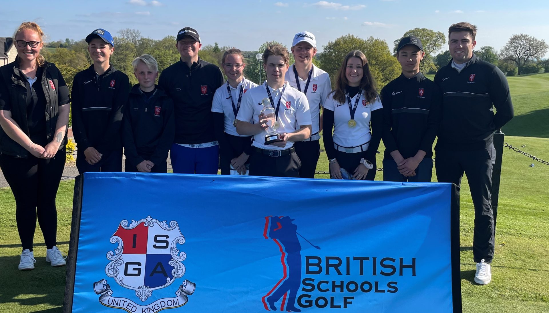 Our Golf team competed in the ISGA British Schools National Finals at Breadsall Priory Golf Club in Derby on Wednesday 27 – Friday 29 April. This was a two-day event over 36 holes to see which school would take the national title. All students fought hard in climbing the leader board. After a superb final round of golf from all, New Hall secured the top spot and won the ISGA British Schools National Finals team prize, beating Loretto and Rossall School, the number 1 & 2 ranked schools for golf. Well done to Henry (Year 11), Oliver (Year 13), Millie (Year 12), Maia (Year 10), Harrison (Year 13), Cody, Blake and Oscar on this exceptional achievement representing the School and coming out victorious.